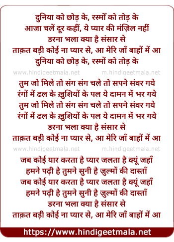 Lyrics of Duniya Ko Chhod Ke, Rasmo Ko Tod Ke - दुनिया को छोड़ के, रस्मोँ को तोड़ के