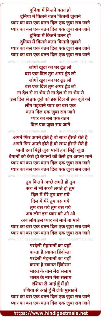 Lyrics of Duniya Me Kitne Watan - दुनिया में कितने वतन