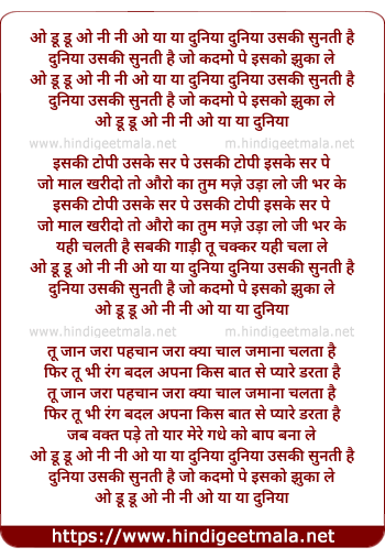 Lyrics of Duniya Uski Sunti Hai - दुनिया उसकी सुनती है