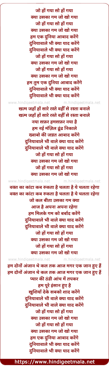 Lyrics of Duniyawaale Bhi Kya Yaad Karenge - दुनियावाले भी क्या याद करेंगे