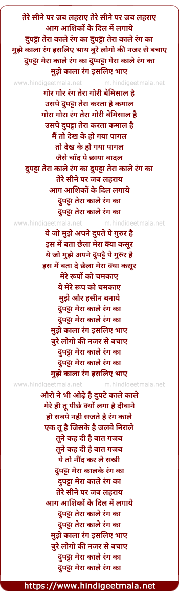 Lyrics of Dupatta Tera Kale Rang Da - दुपट्टा टिया काले रंग दा