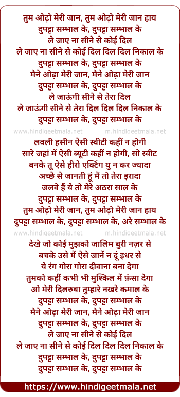 Lyrics of Duptta Sambhal Ke - दुपट्टा सम्भाल के