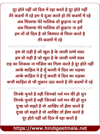 Lyrics of Dur Hote Nahi Jo Dil Me Raha Karte Hai Dur Hote Nahi - दूर होते नहीं जो दिल में रहा करते है दूर होते नहीं