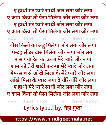 Lyrics of E Hathi Mere Pyare Sathi Joor Laga - ए हाथी मेरे प्यारे साथी जोर लगा