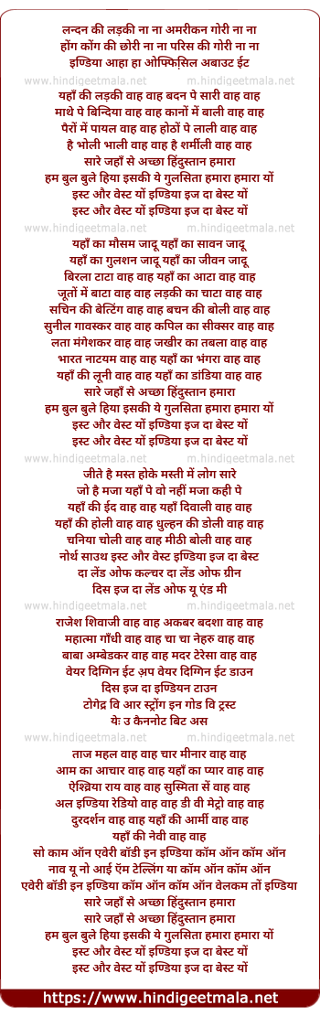 Lyrics of East Or West India Is The Best, Ham Bul Bule Hai Isakee - ईस्ट और वेस्ट इंडिया इज दा बेस्ट, हम बुल बुले है इसकी