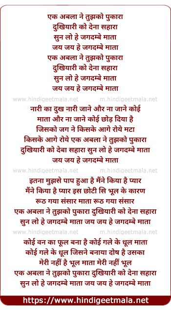 Lyrics of Ek Abla Ne Tujhko Pukara - एक अबला ने तुझको पुकारा