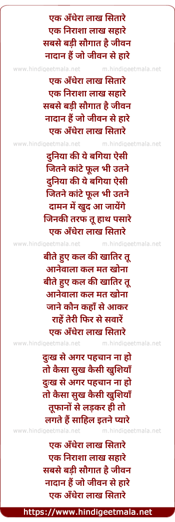 Lyrics of Ek Andhera Laakh Sitaare - एक अँधेरा लाख सितारे