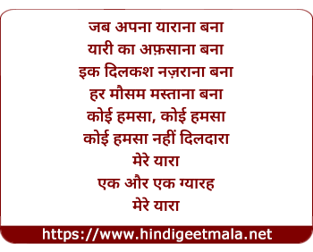 Lyrics of Ek Aur Ek Gyarah (Sad) - जब अपना याराना बना