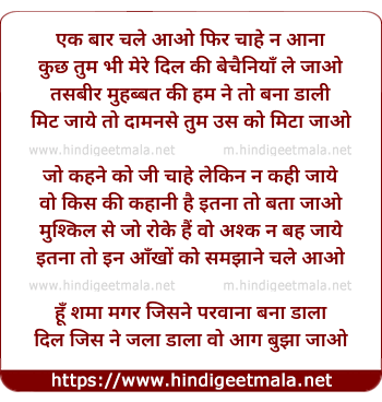 Lyrics of Ek Baar Chale Aao Phir Chaahe Na Aanaa - एक बार चले आओ फिर चाहे न आना