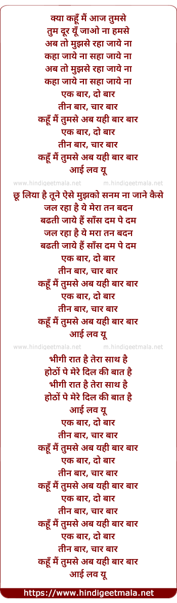 Lyrics of Ek Baar Do Baar - क्या कहूँ मैं आज तुमसे