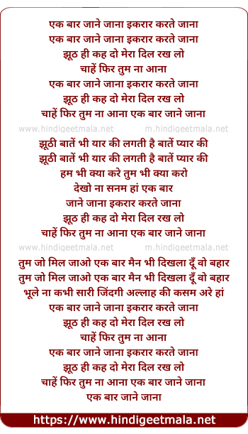 Lyrics of Ek Baar Jane Jana Ikrar Karte Jana - एक बार जाने जाना इकरार करते जाना