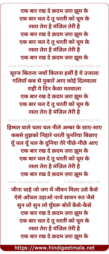 Lyrics of Ek Baar Rakh De Qadam Zaraa Jhum Ke - एक बार रख दे क़दम ज़रा झूम के