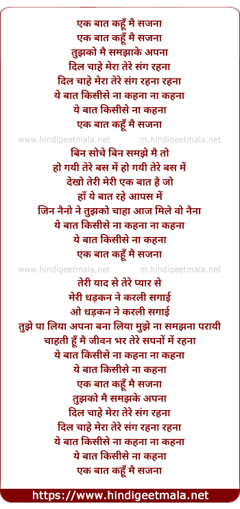 Lyrics of Ek Baat Kahoon Main Sajana - एक बात कहूँ मै सजना