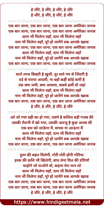 Lyrics of Ek Bar Jana America Janab - एक बार जाना अमेरिका जनाब