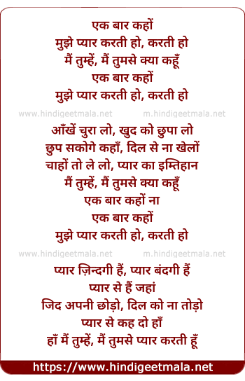 Lyrics of Ek Bar Kaho Mujhe Pyar Karte Ho - एक बार कहों मुझे प्यार करती हो