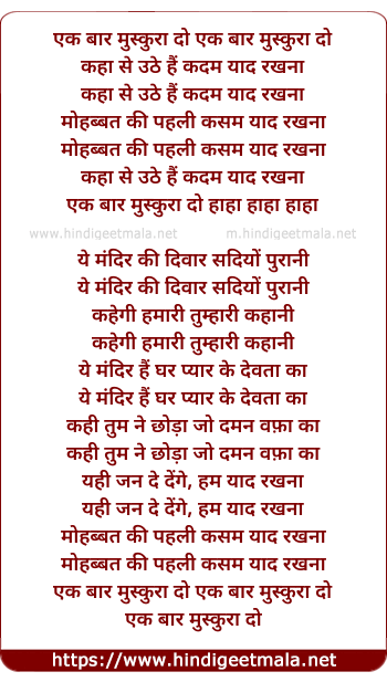Lyrics of Ek Bar Muskura Do - एक बार मुस्कुरा दो