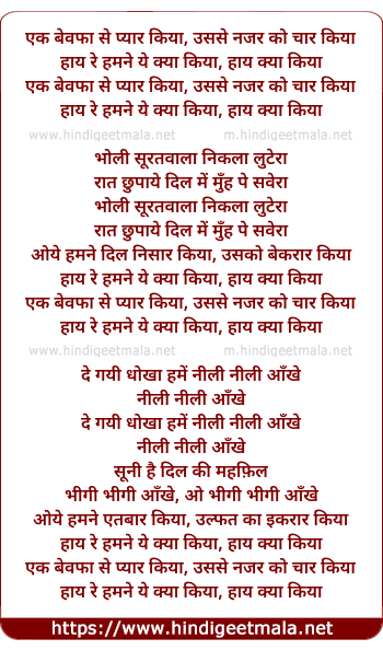 Poetic Translation - Lyrics of Ek Bewfa Se Pyar Kiya - एक बेवफा से प्यार किया