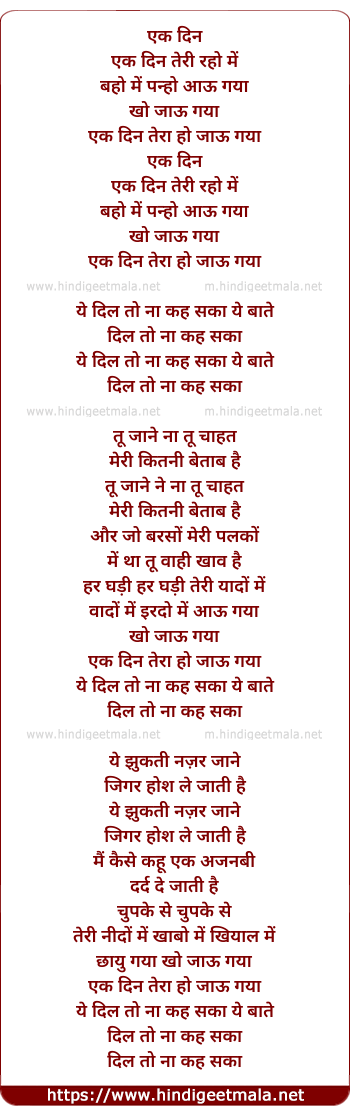Lyrics of Ek Din Teri Raho Me - एक दिन तेरी रहो में