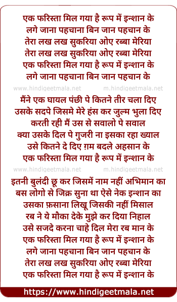 ek farishta mil gaya hai roop me insaan ke