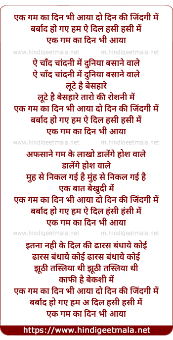 Lyrics of Ek Gham Ka Din Bhi Aaya - एक गम का दिन भी आया