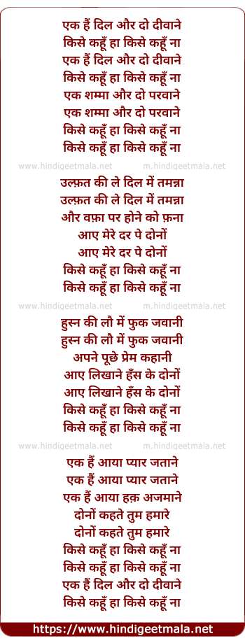 Lyrics of Ek Hai Dil Aur Do Deewane - एक हैं दिल और दो दीवाने