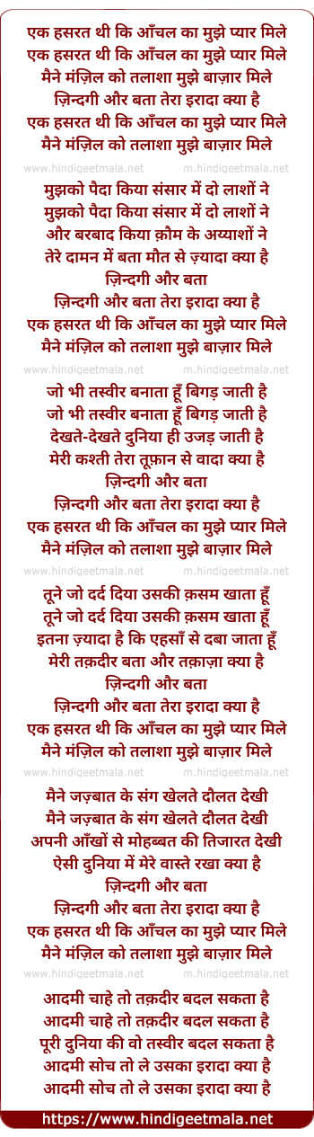 Lyrics of Ek Hasarat Thi Ki Aanchal Kaa Mujhe Pyaar Mile - एक हसरत थी कि आँचल का मुझे प्यार मिले