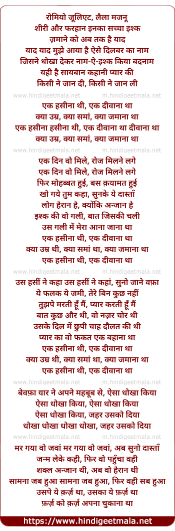ek hasina thi hasina thi, ek deewana tha deewana tha