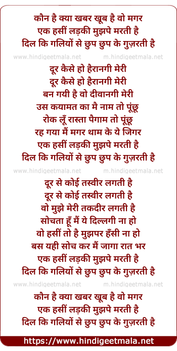 Lyrics of Ek Hasin Ladki Mujhpe Marti Hai - एक हसीं लड़की मुझपे मरती है