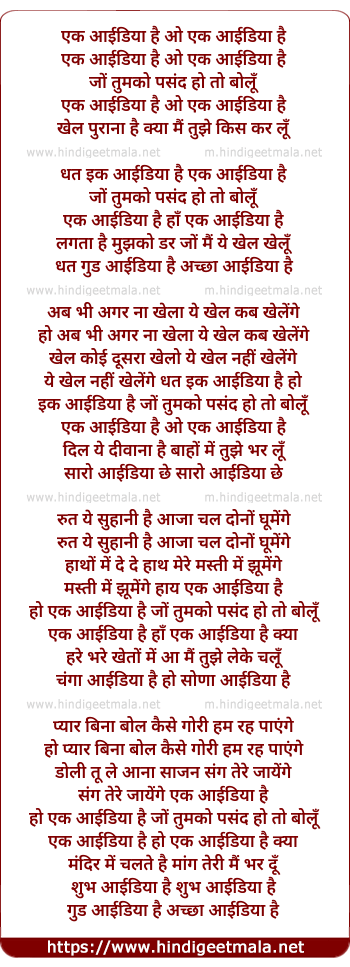 Lyrics of Ek Idea Hai - एक आईडिया है