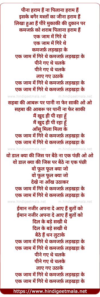 Lyrics of Ek Jam Me Gire The - पीना हराम हैं ना पिलाना हराम हैं