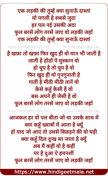Lyrics of Ek Ladki Ki Tumhe Kya Sunau Dastan - एक लड़की की तुम्हें क्या सुनाऊँ दास्तां