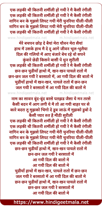 Lyrics of Ek Ladaki Thi Kitani Sharmili - एक लड़की थी कितनी शर्मीली