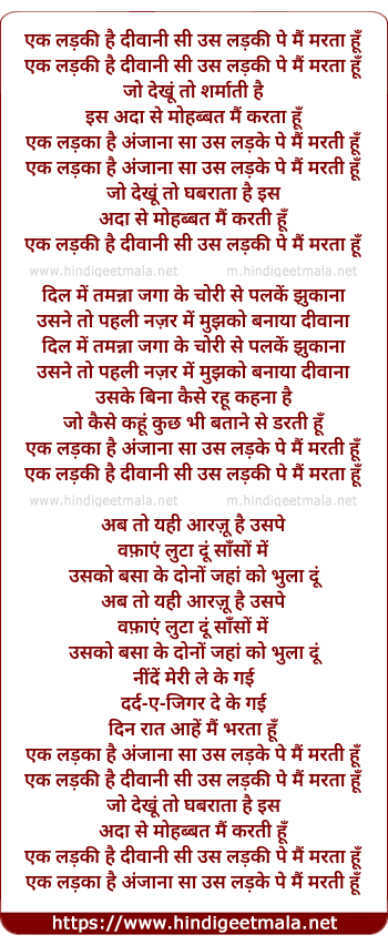 Lyrics of Ek Ladki Hai Diwani Si - एक लड़की है दीवानी सी