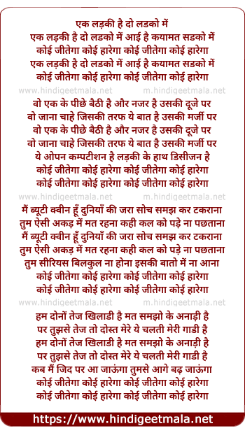 Lyrics of Ek Ladki Hai Do Ladko Me - एक लड़की है दो लडको में