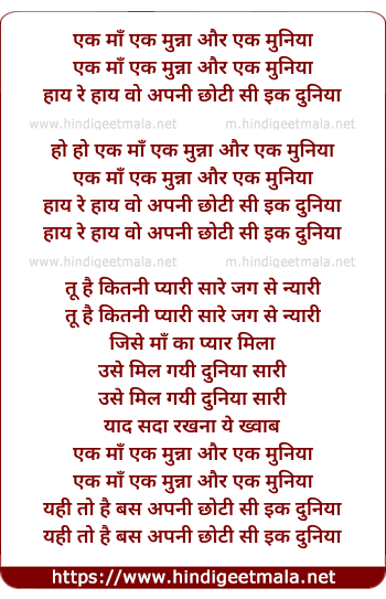 Lyrics of Ek Maa Ek Munna - एक माँ एक मुन्ना