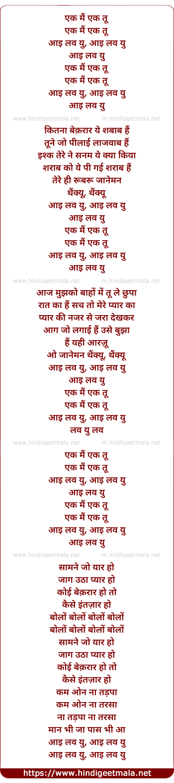 Lyrics of Ek Main Ek Tu - एक मैं एक तू