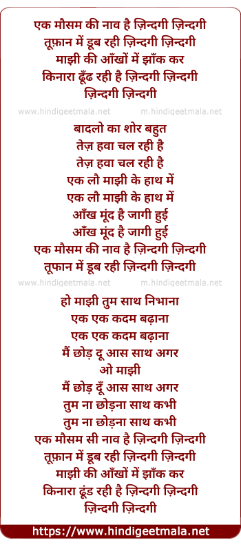 Lyrics of Ek Masoom Si Naav Zindagi - एक मौसम की नाव ज़िन्दगी