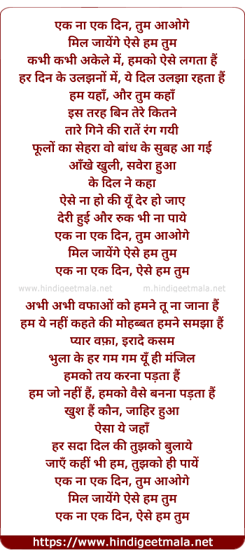 Lyrics of Ek Naa Ek Din - एक ना एक दिन, तुम आओगे
