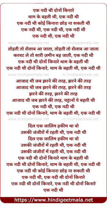 Lyrics of Ek Nadi Thi Dono Kinare - एक नदी थी दोनों किनारे