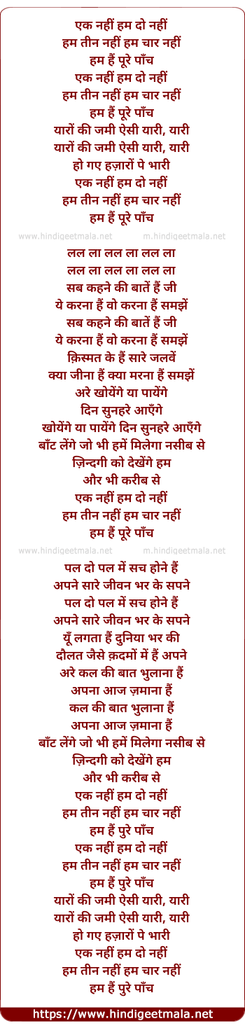 Lyrics of Ek Nahi Hum Do Nahi - एक नहीं हम दो नहीं