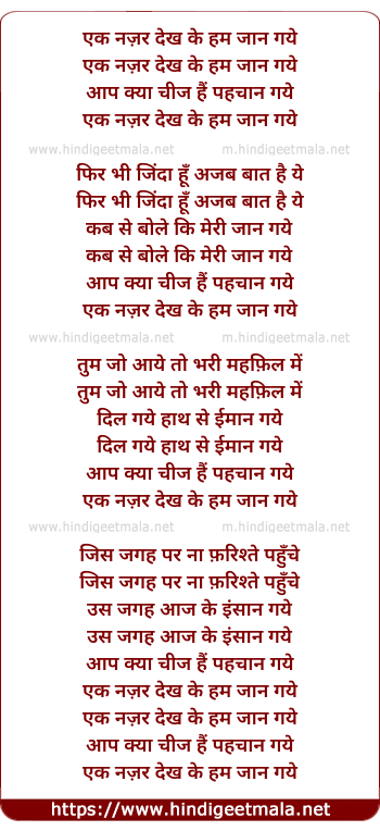Lyrics of Ek Nazar Dekh Ke Hum Jaan Gae - एक नज़र देख के हम जान गये