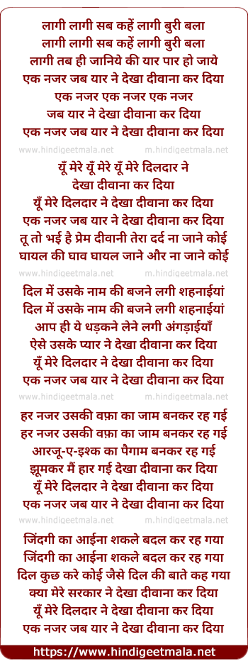 ek najar jab yaar ne dekha deewana kar diya