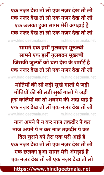 Lyrics of Ek Nazar Dekh To Lo - एक नज़र देख तो लो
