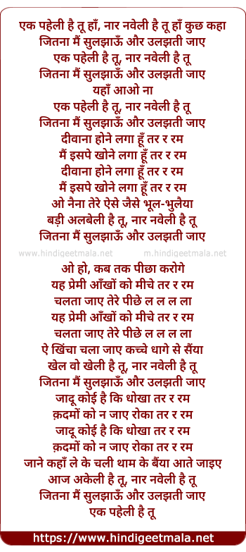 Lyrics of Ek Paheli Hai Tu Haan Naar Naveli Hai Tu - एक पहेली है तू हाँ नार नवेली है तू