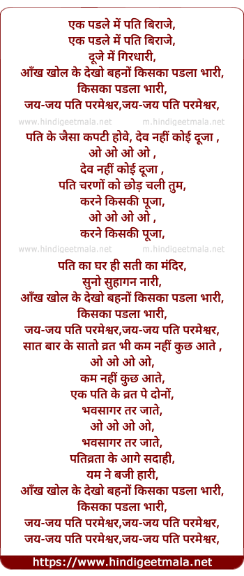 Poetic Translation - Lyrics of Ek Palde Me Pati Biraje