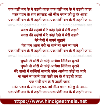 Lyrics of Ek Panchi Ban Ke Mai Udhati Jau - एक पंछी बन के मैं उड़ती जाऊ