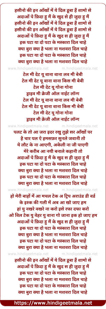 Lyrics of Ek Pata Ya Do Pata Ke Maskhara Dil Chahe - इक पटा या दो पटा के मस्कारा दिल चाहे