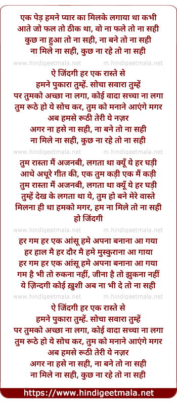 Ek Ped Humne Payar Ka Milke Lagaya Tha Kabhi - एक पेड़ हमने प्यार का मिलके लगाया था कभी