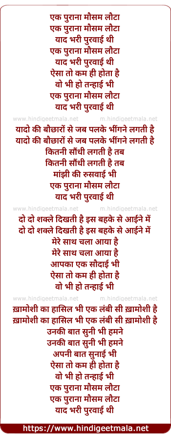 Lyrics of Ek Purna Mausam Lauta - एक पुराना मौसम लौटा