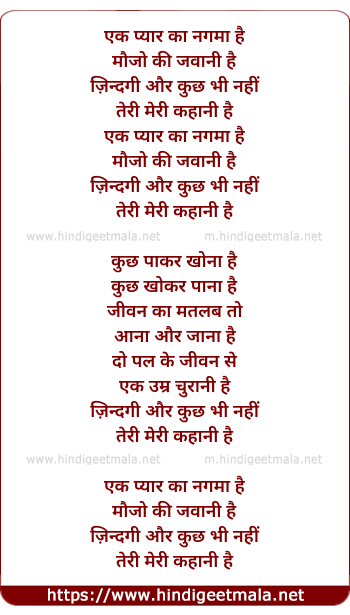 Ek Pyar Ka Naghma Hai - एक प्यार का नगमा है